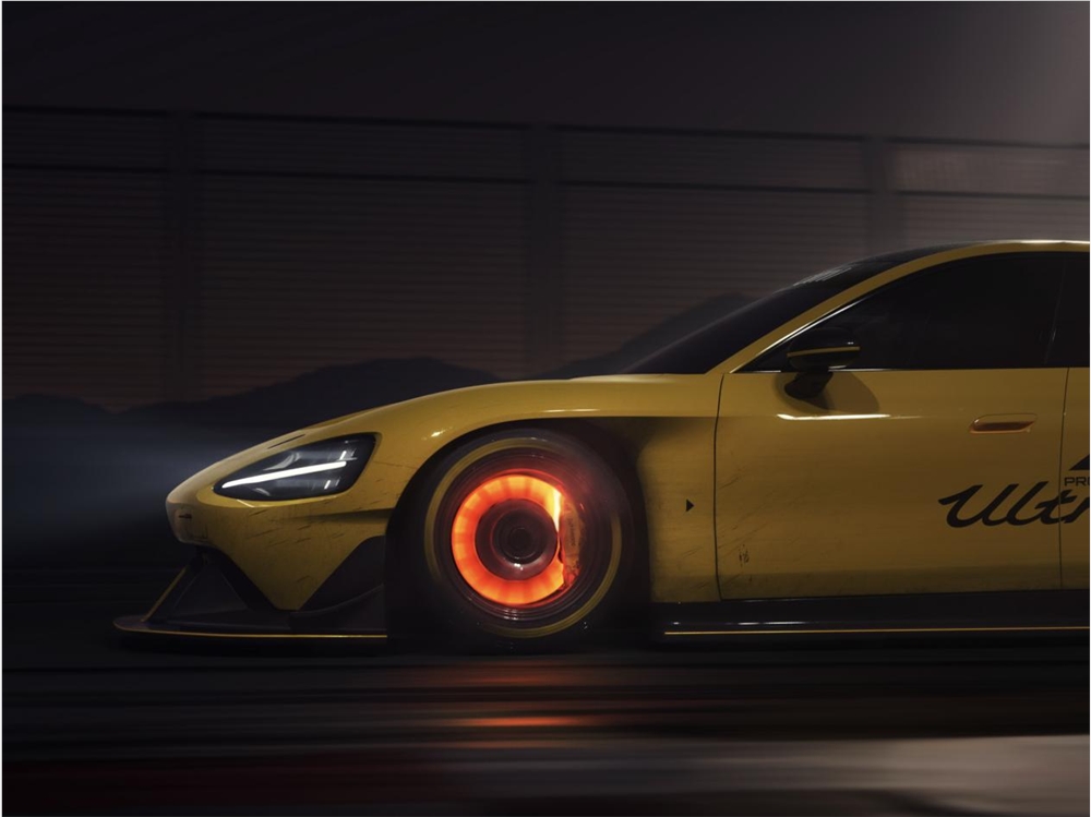 Xiaomi SU7Ultra Prototype采用了AP Racing品牌前后各六活塞的赛用一体式锻造固定卡钳,以及最高工作温度大于800℃的赛用制动盘和制动片;同时配合能量回收系统最大0.6g的减速度,可提供强大而稳定的制动力——Xiaomi SU7Ultra Prototype的最大制动减速度高达2.36g,100km/h-0制动距离仅为25m。
