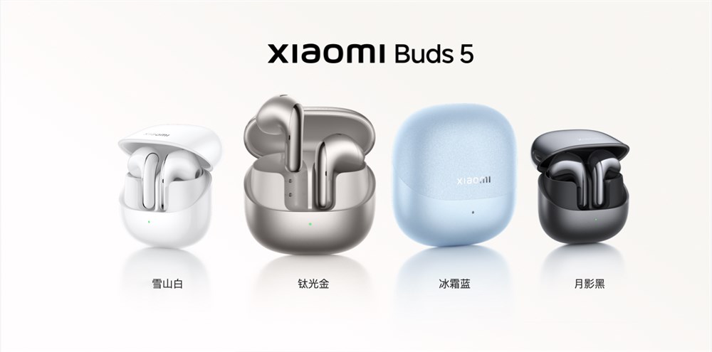 小米 Buds5外观提供月影黑、雪山白、钛光金、冰霜蓝四种配色,机身以科技之美重塑盒身曲线,入手如鹅卵石般圆润。为满足舒适设计无感佩戴,小米 Buds5全新升级音符造型机身,基于人体工学在数据之上,让耳机流线进一步贴合人耳曲面,不顶耳道、不硌耳廓,搭配小巧天使圆环,让机身点睛,更夺目。小米 Buds5单只耳机仅4.2g,配合全新轻量化设计,舒适不压耳,给你几近无感的悦耳体验。