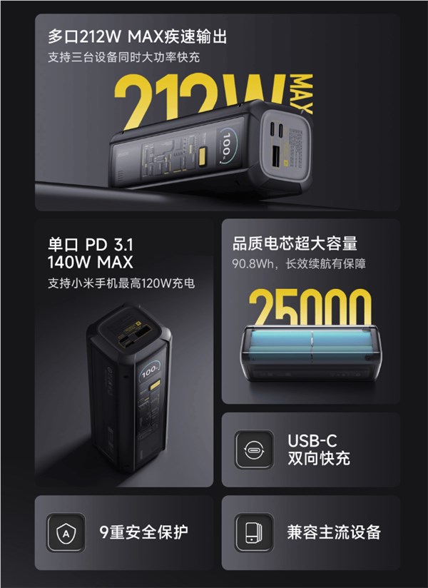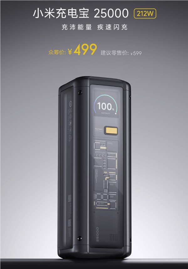 小米发布 25000mAh 212W 超强充电宝,众筹价 499 元