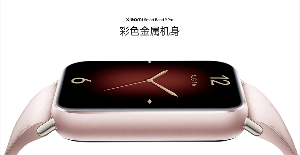 外观方面,小米手环9 Pro新升级铝合金机身,细腻光泽与简约设计相得益彰,配合哑光喷砂质感,触感温润且不易沾指纹,抬手间优雅尽显。小米手环 9 系列全金属机身,轻盈坚固,光泽流转! 新增粉金配色,精致质感之上,更添温柔、灵动,令人一眼心动。