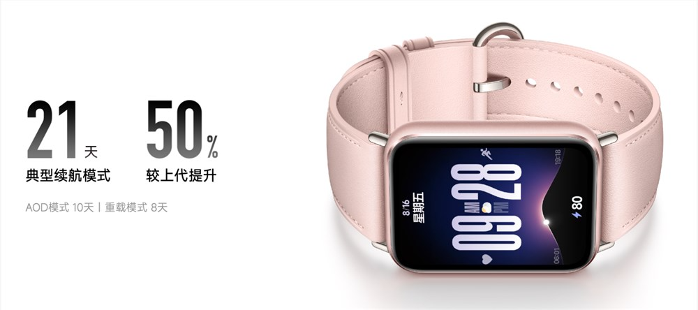 小米手环9 Pro采用低功耗硬件升级和智能功耗算法加持,系统功耗下降25%,突破性实现常规使用 21 天的超耐久续航表现。AOD模式也可续航 10 天,持久守护,尽享乐趣。此外,小米手环9 Pro配合5ATM 防水,无论是健身、游泳还是在雨中奔跑,都能时刻陪伴,记录每一个精彩瞬间。