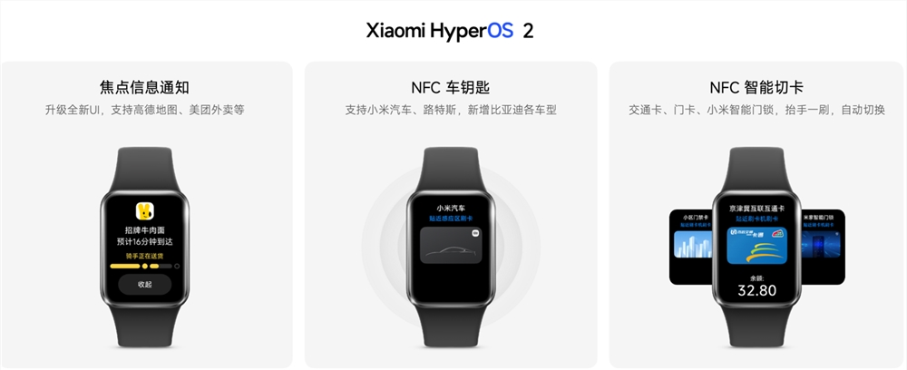 小米手环9 Pro支持最新的澎湃OS2,做到智能互联再升级,全新的焦点信息,抬腕可见,打车、外卖信息,实时掌握。小米手环9 Pro配备了更支持更强大的NFC功能,它也是小米手环系列首次支持NFC 智能切卡功能更支持「定时切卡」和「自动切换卡片」,刷卡更便捷。基础功能方面,小米手环9 Pro已覆盖百大城市公交、地铁刷卡出行,还能做门禁卡,支持米家门锁,支持NFC车钥匙( 支持小米汽车、路特斯及比亚迪全系车型),出门不必带车钥匙,抬腕即可解锁。