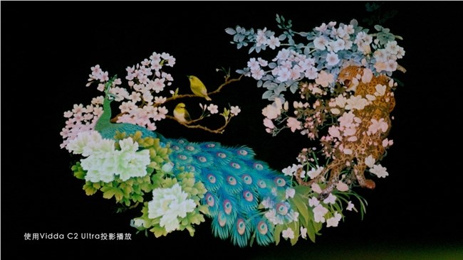 ”选择投影的时候我找了好久,因为要表现好作品,对机器的亮度和色彩还原要求很高,前前后后找了很多款,最后挑到满意的Vidda三色激光投影,在挑选的过程中,我都快变成一个测评博主了。” 訾翔杰他认为,三色激光投影能在大尺寸屏幕下,展示出高亮度和高清画质,最 大程度还原出更真实的素材细节。