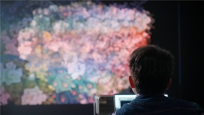 《九歌》 是屈原在民间祭祀的乐歌基础上创作的,最富有想象力的诗歌作品之一,他用没有色彩的文字描绘了一个光怪陆离 、五光十色的奇幻世界。对于创作初衷,訾翔杰说,他希望结合自己所学的视觉传达专业,用现代投影的方式对传统文化进行创新。他制作了几百片手绘材料,绘制了3000多个动画图层 ,最后用Vidda C2Ultra三色激光投影完美呈现了这个数字艺术作品。