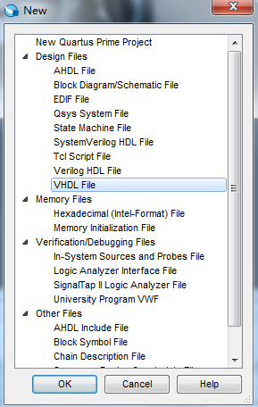 选择VHDL文件,这里以VHDL为例子,Verialog一样的