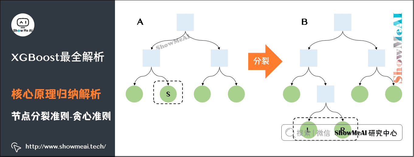 我们之前文章【决策树模型详解】里给大家讲到了决策树模型是递归生长形成的,而XGBoost的子模型树也一样,需要要依赖节点递归分裂的贪心准则来实现树的生成。