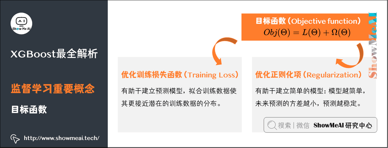 回顾一下目标函数 O b j ( Θ ) = L ( Θ ) + Ω ( Θ ) Obj(Theta )=L(Theta )+Omega (Theta ) Obj(Θ)=L(Θ)+Ω(Θ),为什么目标函数需要两部分组成呢?