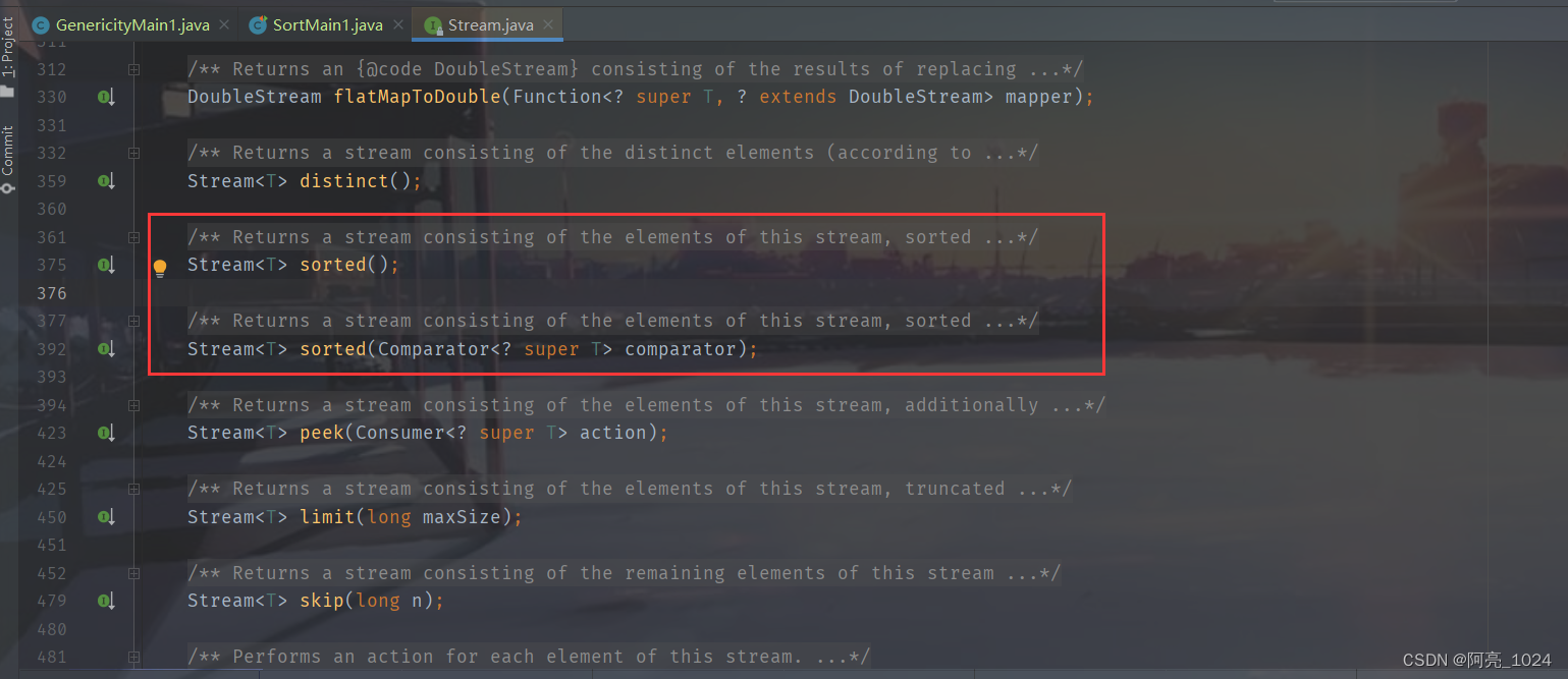 在java.util.stream.Stream中,sorted方法有两个重载形式