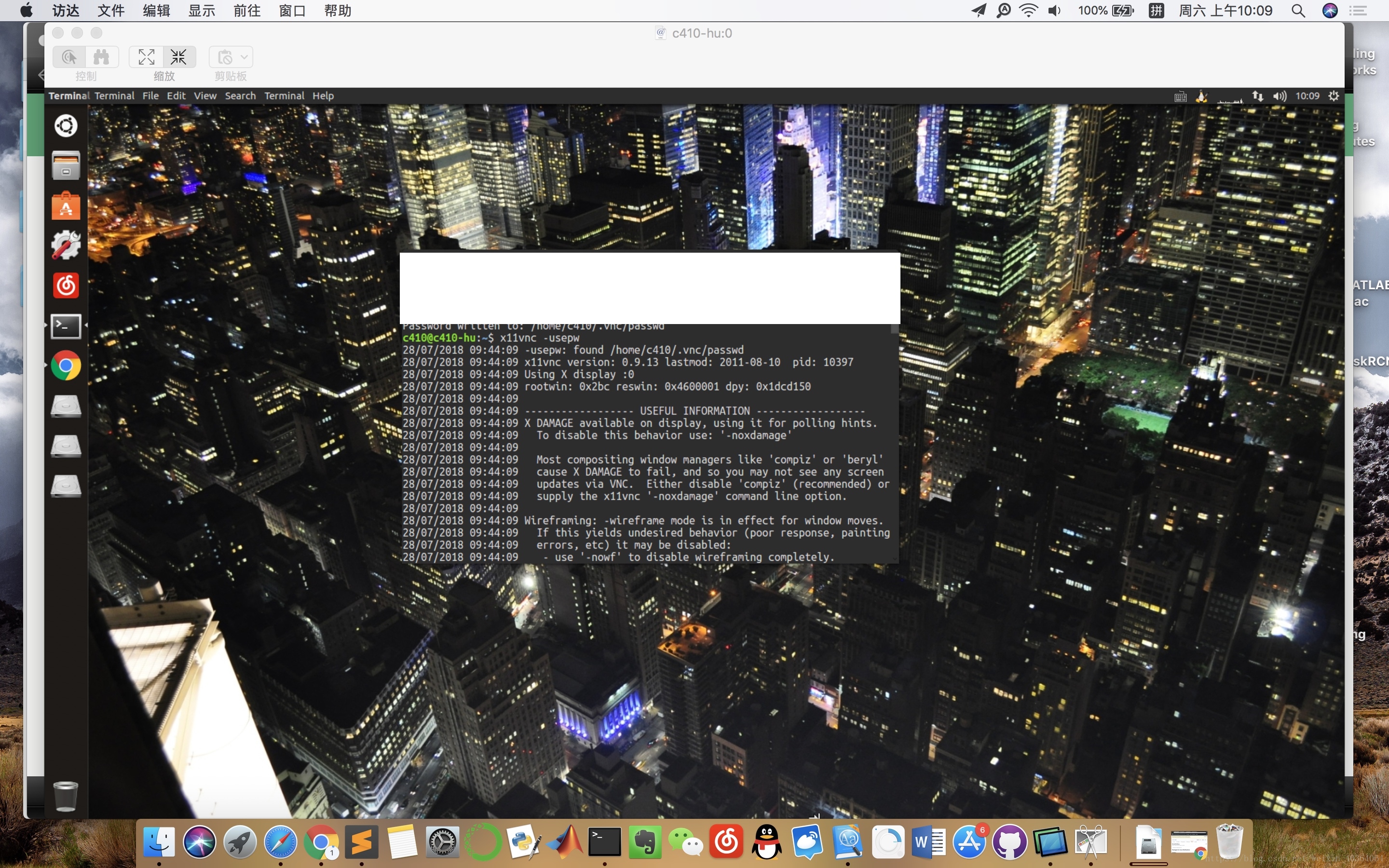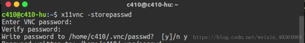 然后需要我们设置VNC的密码,这个在我们使用Mac连接的时候需要用上,接着在终端输入代码:x11vnc -storepasswd