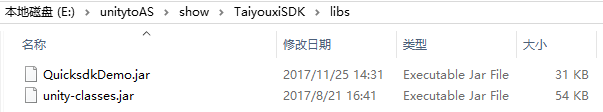 (2)依次进入TaiyouxiSDK,libs文件夹,把第二篇自己编写并导出的jar包拷进来,这里叫QuicksdkDemo。如图。