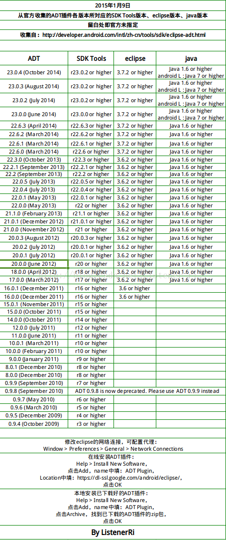以上就是激情龙猫最近收集整理的关于ADT插件安装及各版本所对应的SDK Tools版本-eclipse版本-java版本的全部内容,更多相关ADT插件安装及各版本所对应的SDK内容请搜索靠谱客的其他文章。