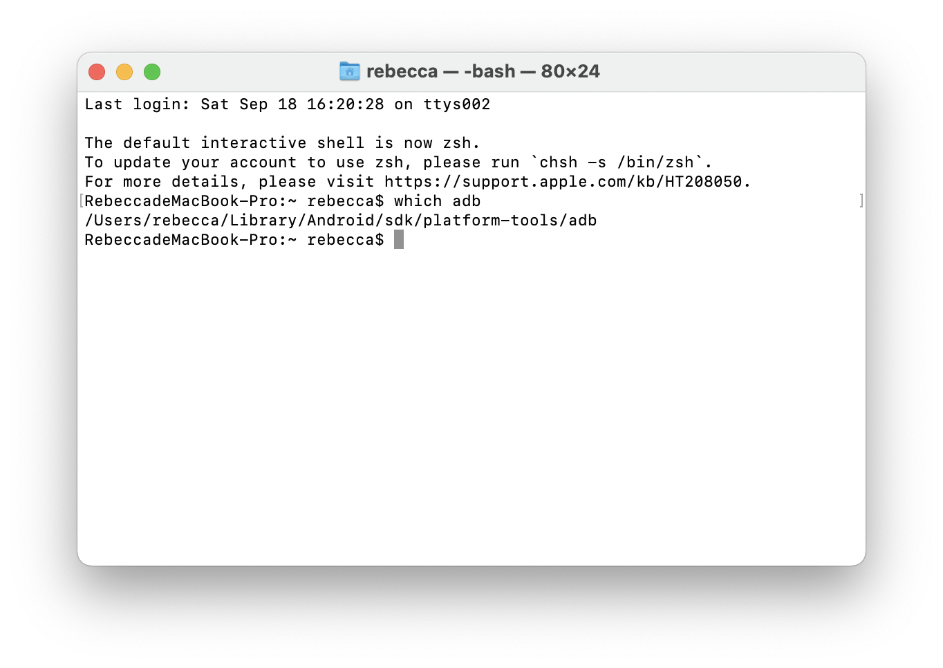 获得路径:/Users/rebecca/Library/Android/sdk/platform-tools/adb