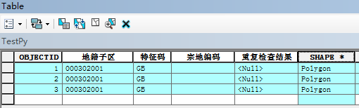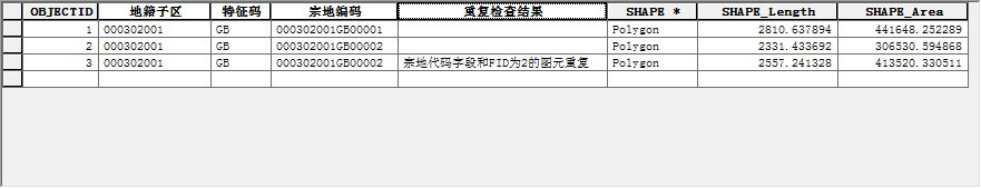 描述: 检查宗地图层,将“宗地代码”字段有重复记录的内容标记出来,并将检查结果赋给"检查结果"字段。