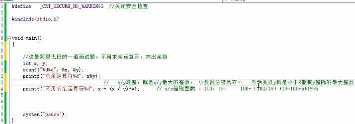 3、算数实现求余代码示例演示: