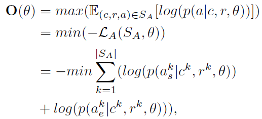 - 论元分类:预测每个token是否为论元的开始或者结束,公式如下: