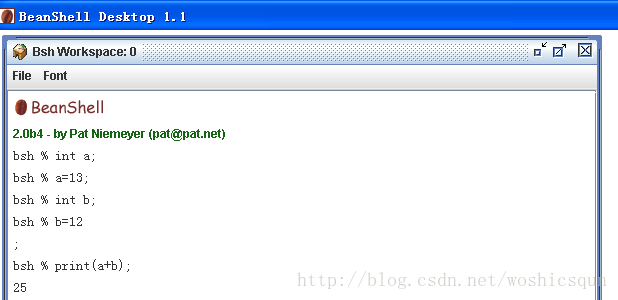 bsh.jar双击后可以运行,类似一个命令提示符窗口,你在这里可以试验你的字符串。例如;