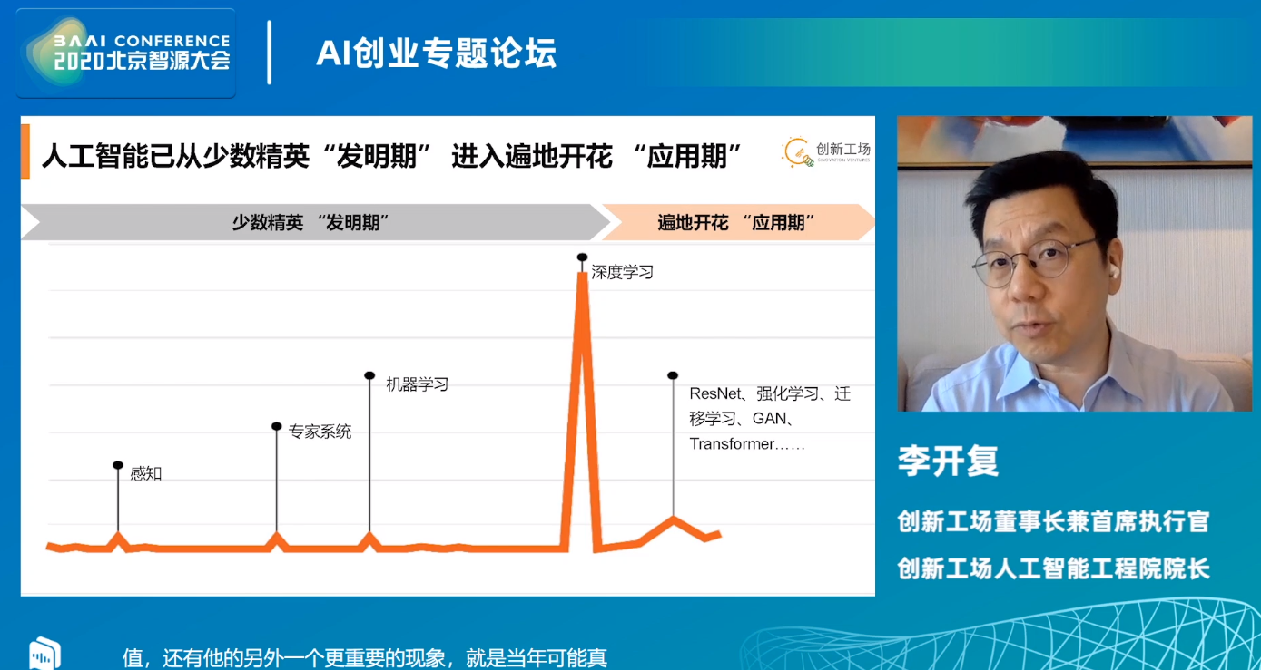 AI:2020年6月23日北京智源大会演讲分享之AI创业专题论坛——09:10-10:00 李开复教授《AI赋能时代的创业》