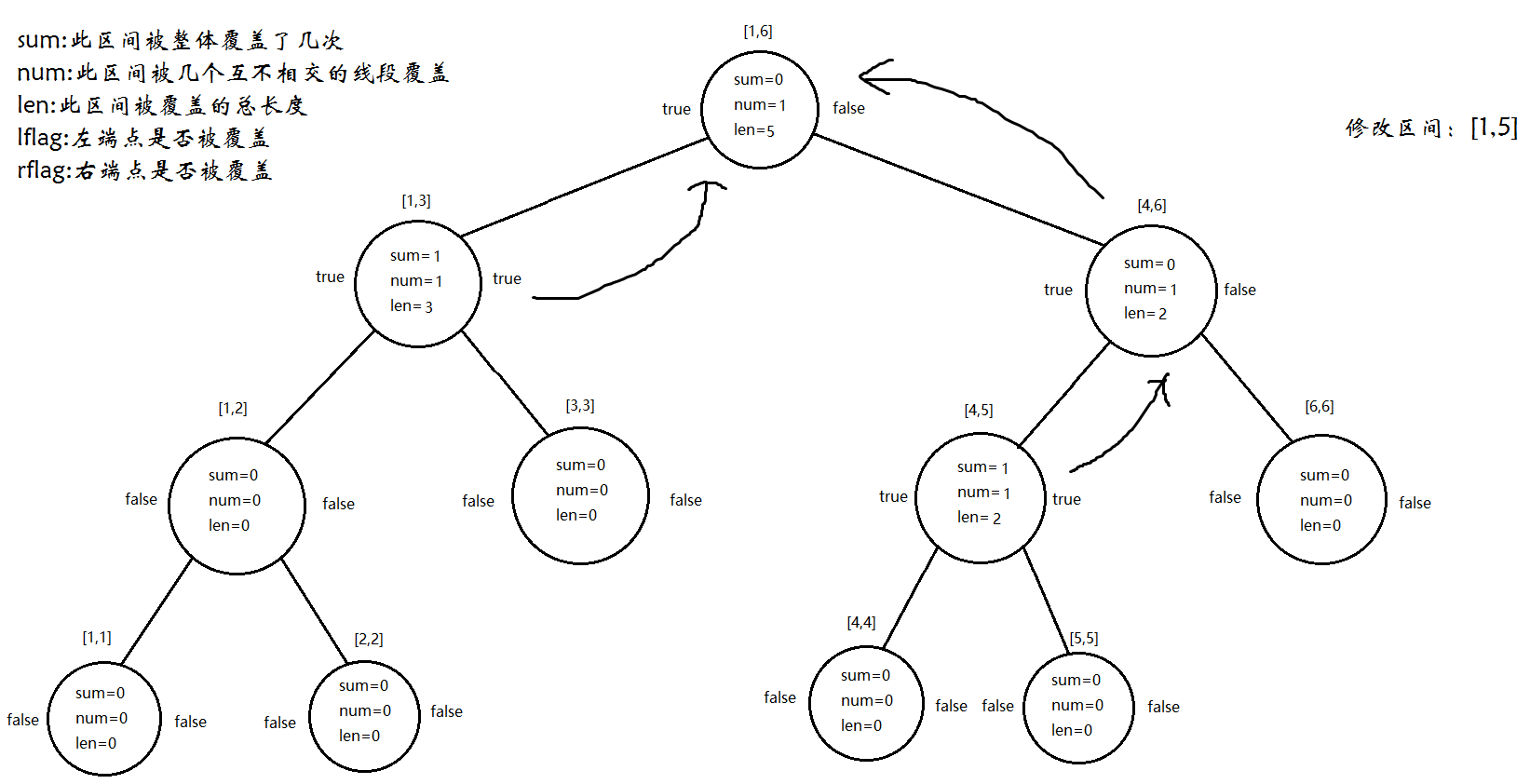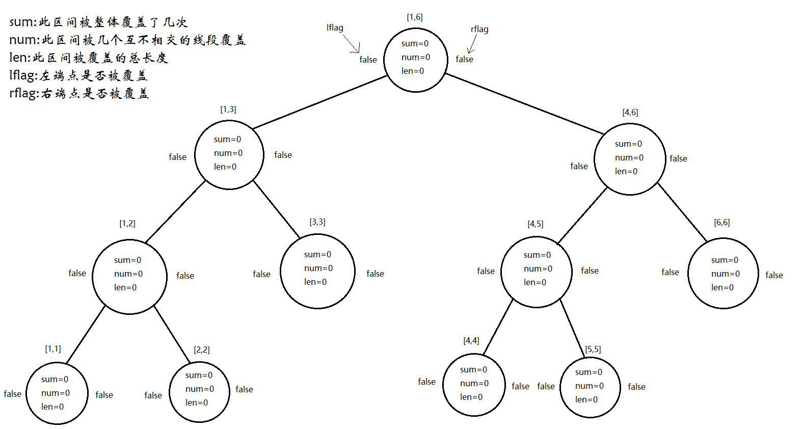 int sum;//整个区间被整体覆盖了几次(类似lazytag,但不下传)