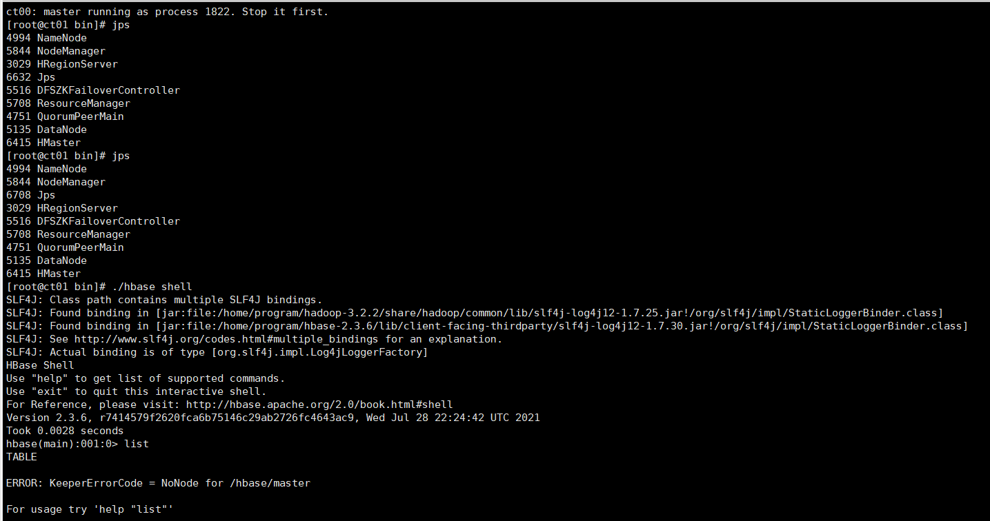今天在做hbase API相关操作作业时,启动hbase以后去shell准备看一下我的表,list一下发现出错了,然后发现hmaster挂掉了