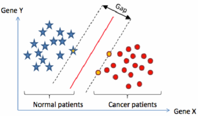 SVM的基本思想是:找到集合边缘上的若干数据(称为支持向量(Support Vector)),用这些点找出一个平面(称为决策面),使得支持向量到该平面的距离最大。