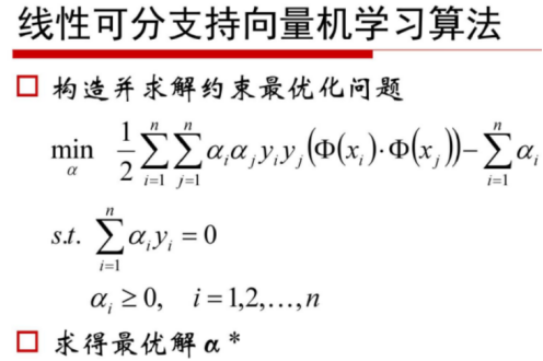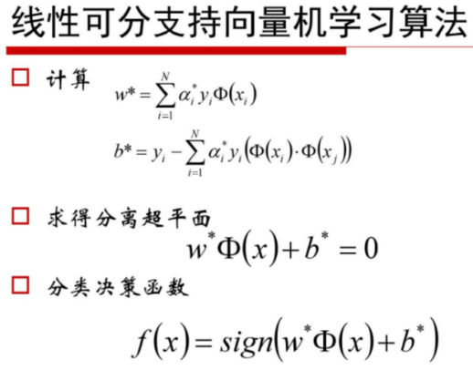 - 当训练样本线性可分时,通过硬间隔最大化,学习一个线性可分支持向量机;