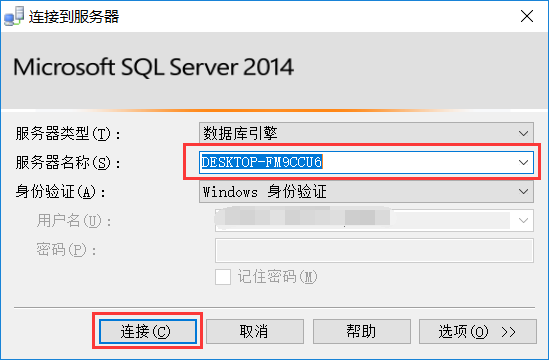 2.打开SQL Server 2014之后会弹出链接到服务器窗口,服务器名称为自己的电脑名,会后点击链接。