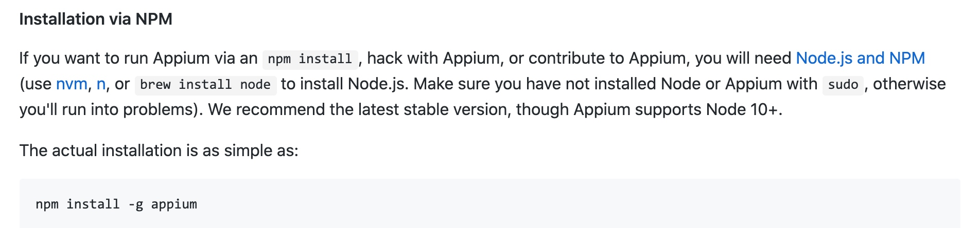 同时appium官网也说了不要以sudo方式安装