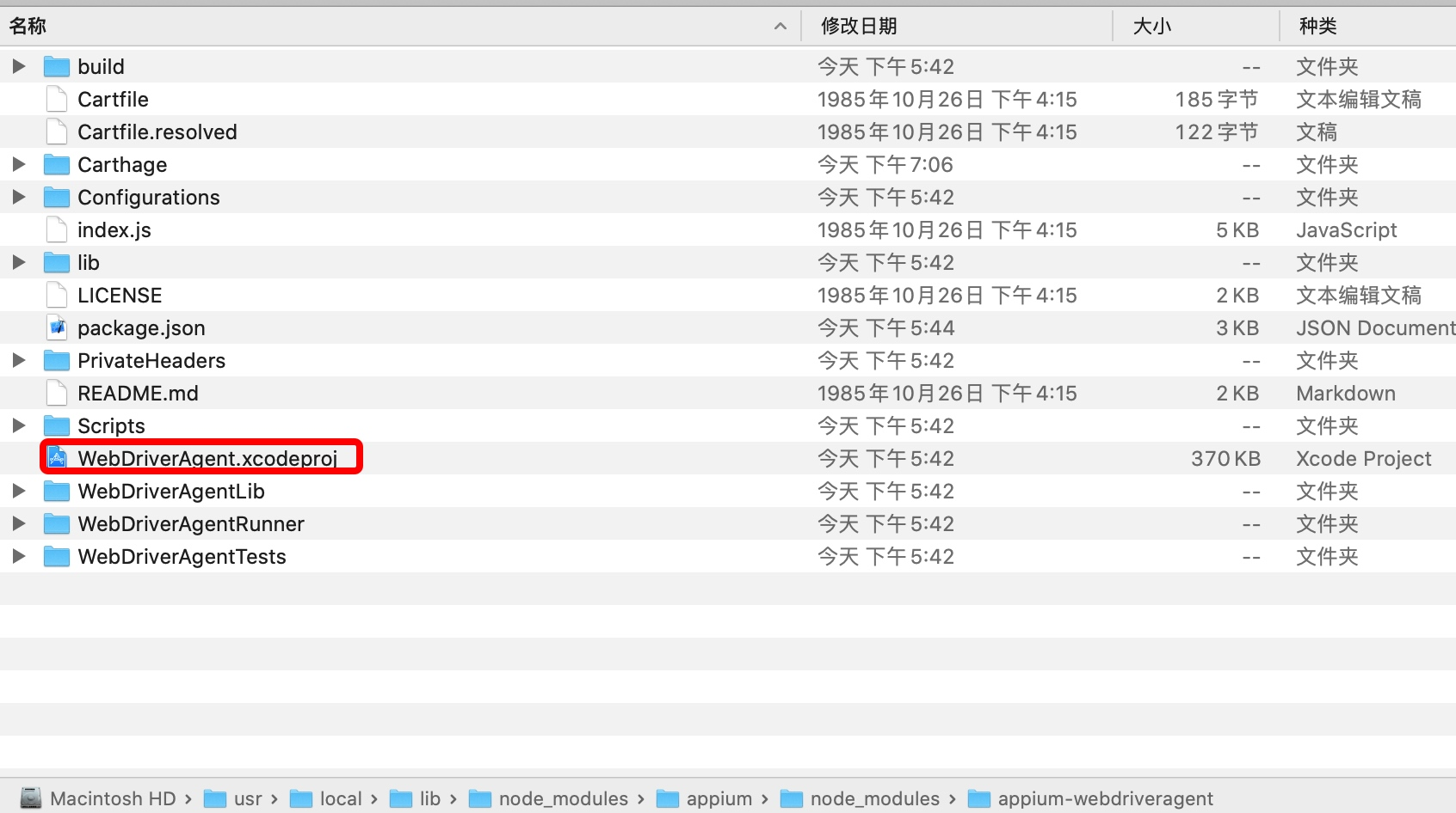 注意:把克隆的版本文件夹名字重命名为:appium-webdriveragent, 要跟appium自带的名字一样。