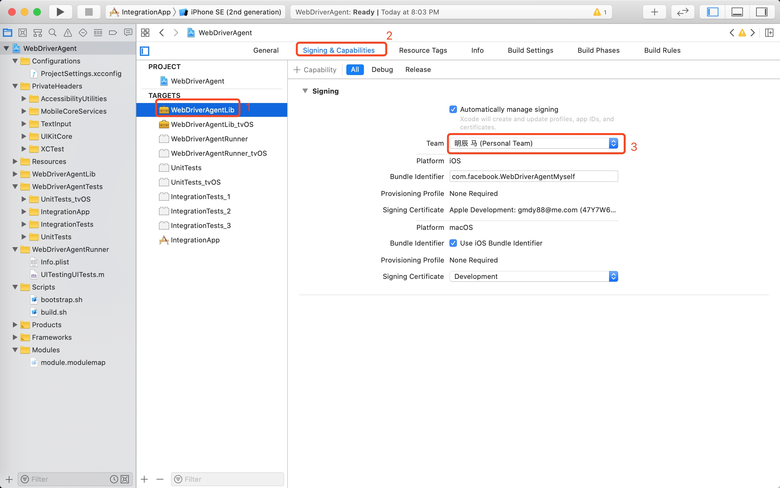 3、在xcode里配置 webdriveragent