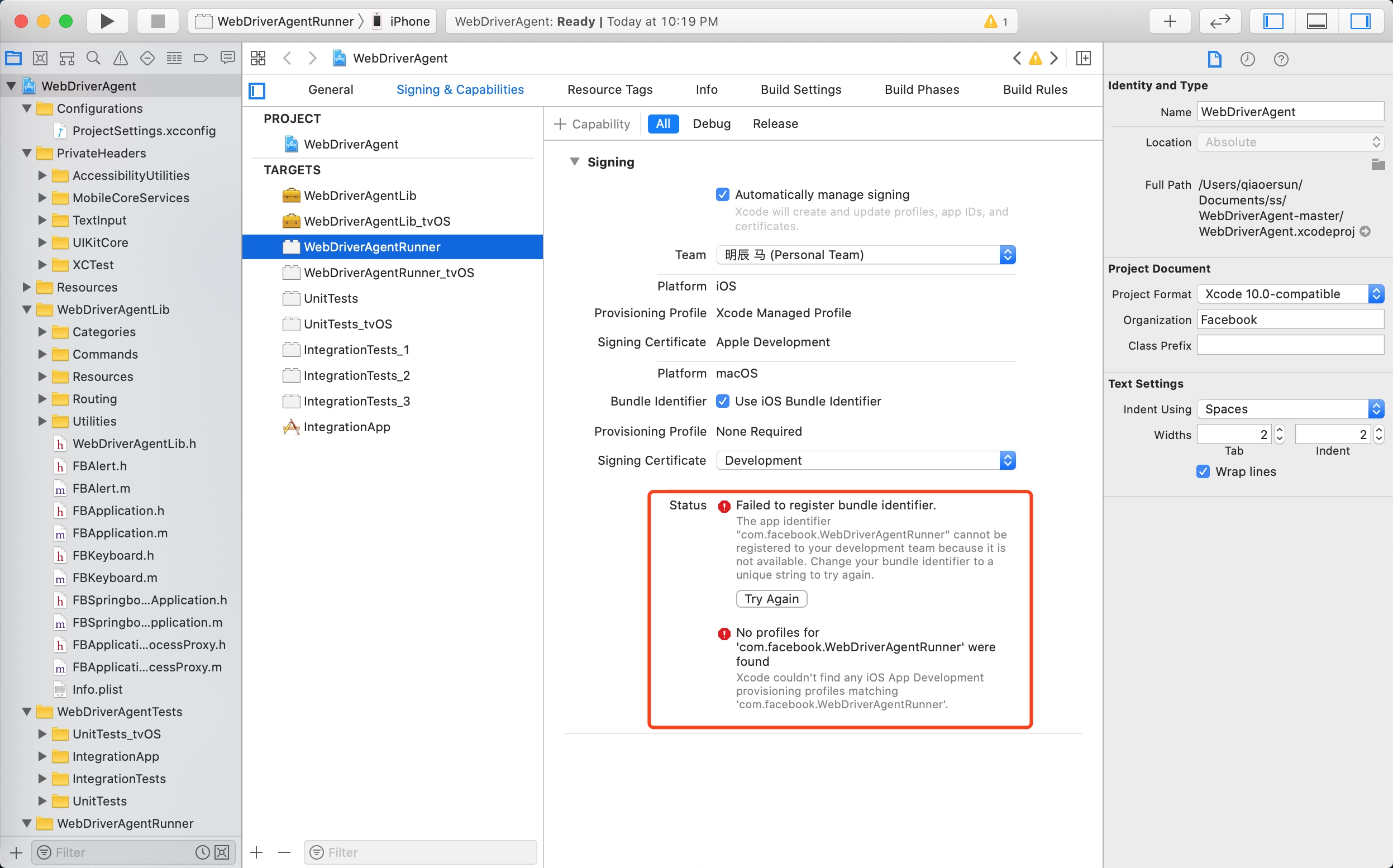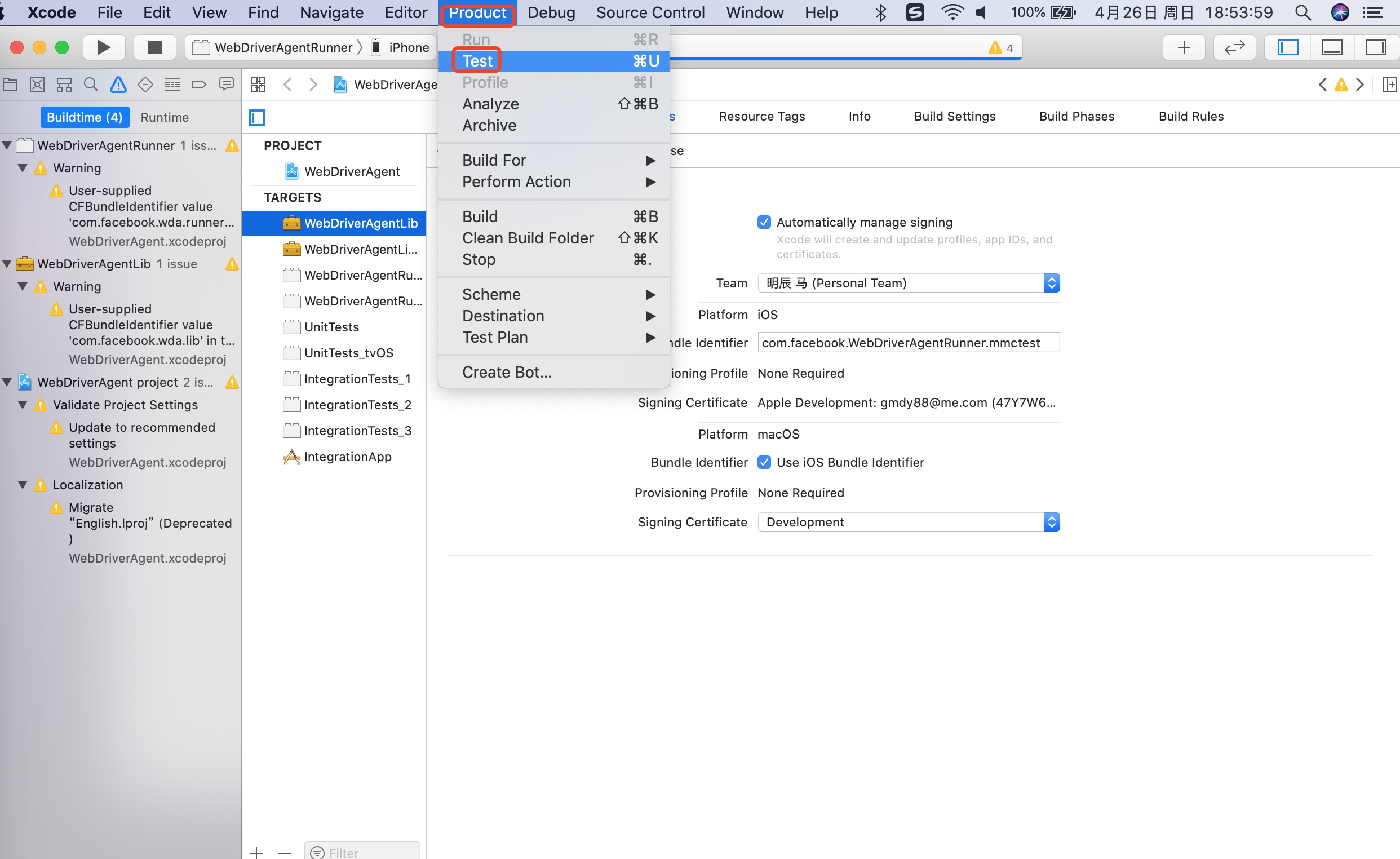(2)编译 WebDriverAgentRunner
