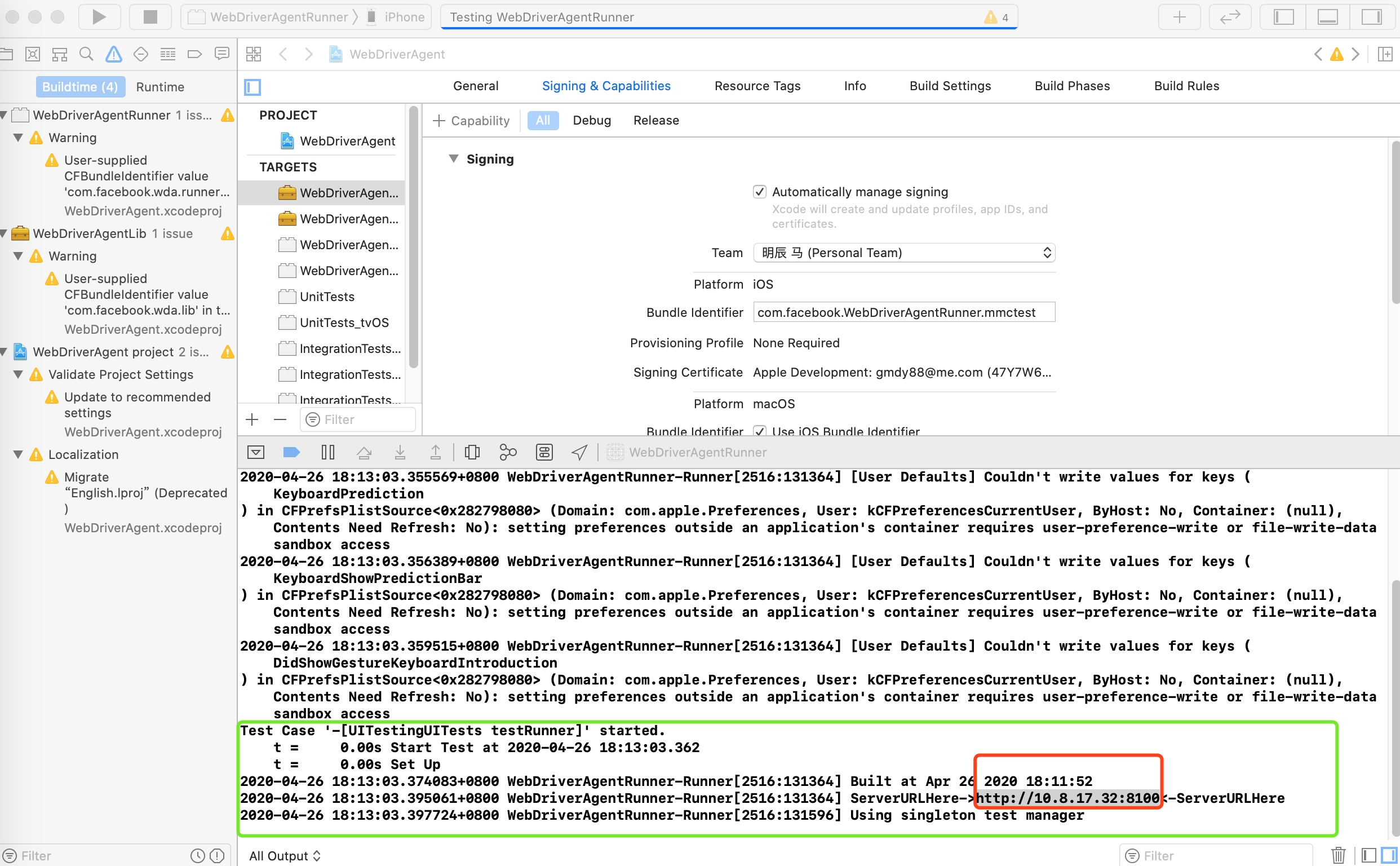 3.2、配置WebDriverAgentRunner