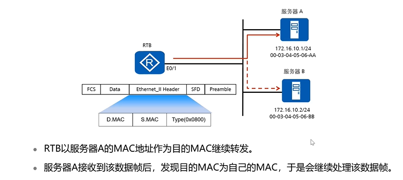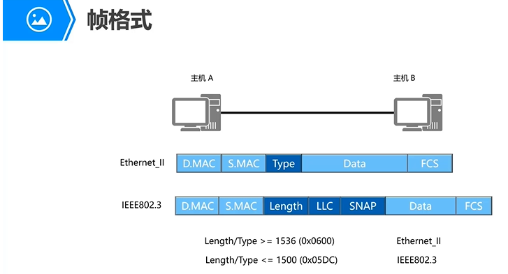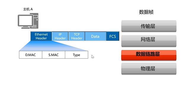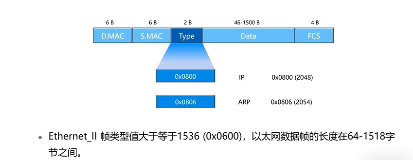 D.MAC:目的MAC地址 S.MAC:源MAC地址 Type:根据Type类型判断交给哪个上层协议。 FCS:帧校验,判断帧的完整性。