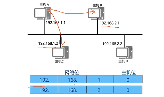 想要进行网络通信,如主机A发送数据至主机C,同属于同一网段,可以直接发送。若主机A发送数据至主机B,则需要知道下一跳的地址(通常是路由网关)。