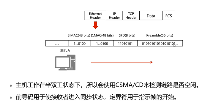 当主机接收到的数据帧所包含的目的MAC地址是自己时,会把以太网封装剥掉后送往上层协议。