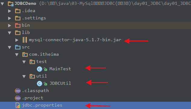 这里我们使用MainTest+Dao+DaoImpl+JdbcUtil的方法;