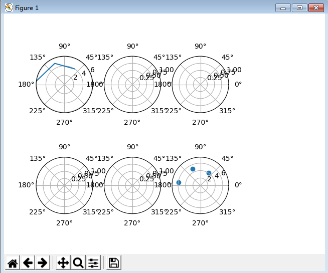 fig,axes = plt.subplots(2,3,subplot_kw=dict(projection='polar'),gridspec_kw=dict(left=0.1,right=0.7))