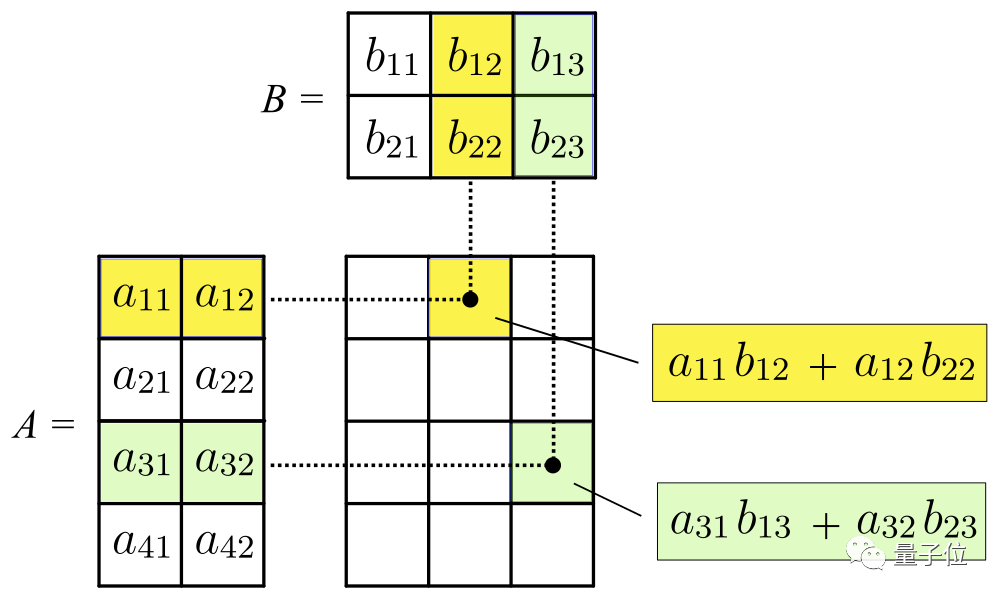 仔细观察,你可以发现矩阵A的第二个脚标和矩阵B第一个脚标相同,都是k。