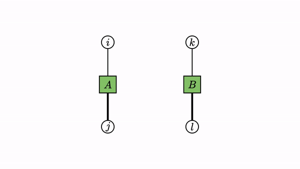 经过乘法运算后,得到的张量只有两个向外的边,可以把中间两个节点压缩成一个节点: