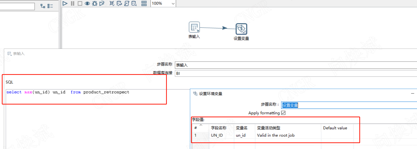 对应作业为下图所示,通过变量过滤,再执行数据插入即可。