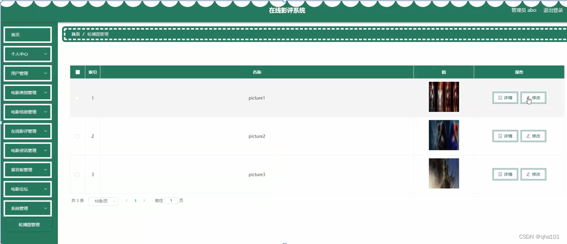 在系统管理页面,管理员可以对轮播图的值和名称进行修改或删除的操作,如图5-12所示。