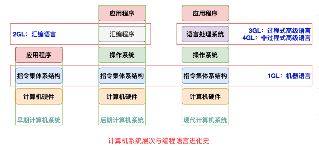 编程语言既然是运行在计算机之上的,我们首先看下计算机系统层次与编程语言的进化史。