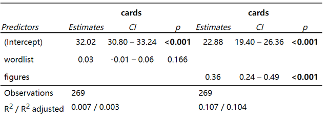 可以看到两个线性回归模型的结果被并列地展示出来了,结果还是挺好的,这里用到的tab_model当然不止可以可以用到普通的线性回归中,像广义线性模型和混合模型都是可以的。