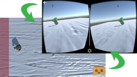 原理上创建一个VR体验是很直接的。替换掉显示在你屏幕上的单个图片,变成两张图片~