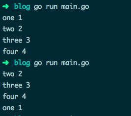 func main() {char := "♥"fmt.Println(len(char)) // 3}func main() {char := "♥"fmt.Println(utf8.RuneCountInString(char)) // 1}func main() {char := "é"fmt.Println(len(char)) // 3fmt.Println(utf8.RuneCountInString(char)) // 2fmt.Println("cafe\u0301") // café // 法文的 cafe,实际上是两个 rune 的组合}func main() {x := []int {1,2 // syntax error: unexpected newline, expecting comma or }}y := []int{1,2,}z := []int{1,2}// ...}func main() {log.Fatal("Fatal level log: log entry") // 输出信息后,程序终止执行log.Println("Nomal level log: log entry")}func main() {data := "A\xfe\x02\xff\x04"for _, v := range data {fmt.Printf("%#x ", v) // 0x41 0xfffd 0x2 0xfffd 0x4 // 错误}for _, v := range []byte(data) {fmt.Printf("%#x ", v) // 0x41 0xfe 0x2 0xff 0x4 // 正确}}func main() {m := map[string]int{"one": 1, "two": 2, "three": 3, "four": 4}for k, v := range m {fmt.Println(k, v)}}