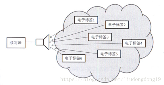 读写器的工作范围同时有多个电子标签,多个电子标签同时将数据传送给读写器