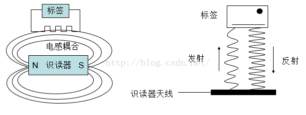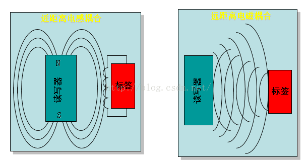 电磁耦合与电感耦合的差别在于电磁耦合方式中阅读器将射频能量以电磁波的形式发送出去;在电感耦合方式中,阅读器将射频能量束缚在阅读器电感线圈的周围,通过交变闭合的线圈磁场,沟通阅读器线圈与射频标签线圈之间的射频通道,没有向空间辐射电磁能量。
