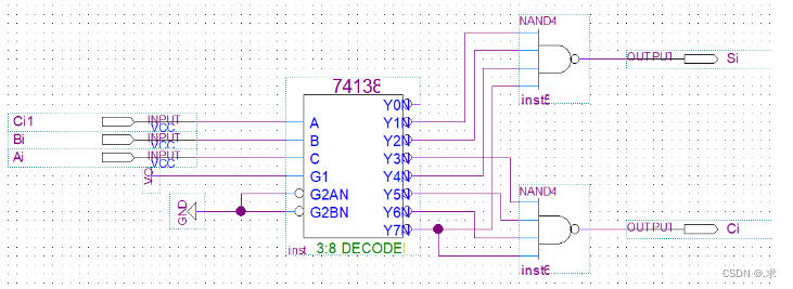 2)用CT74LS138译码器附加必要的门电路实现1位全加器