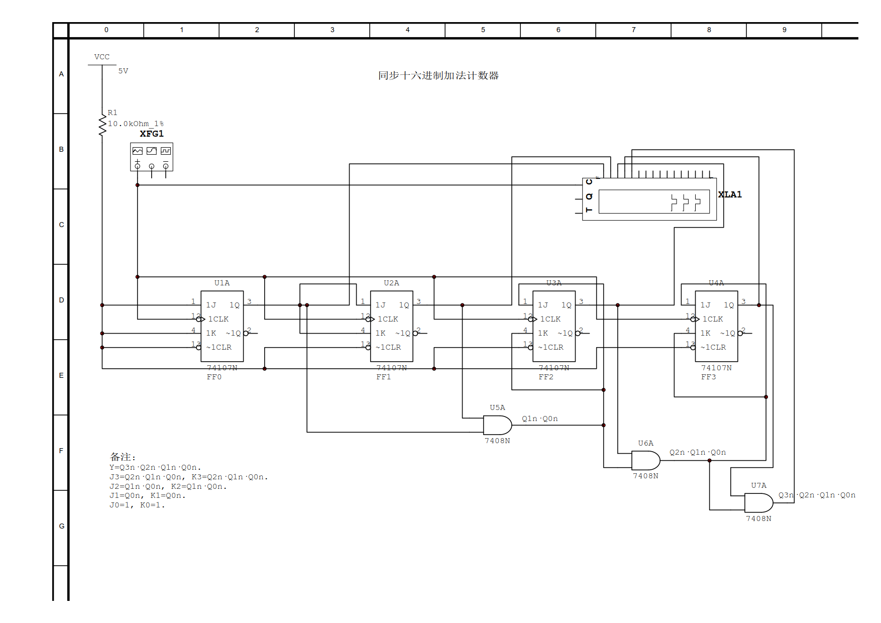 同步十六进制加法计数器(JK)