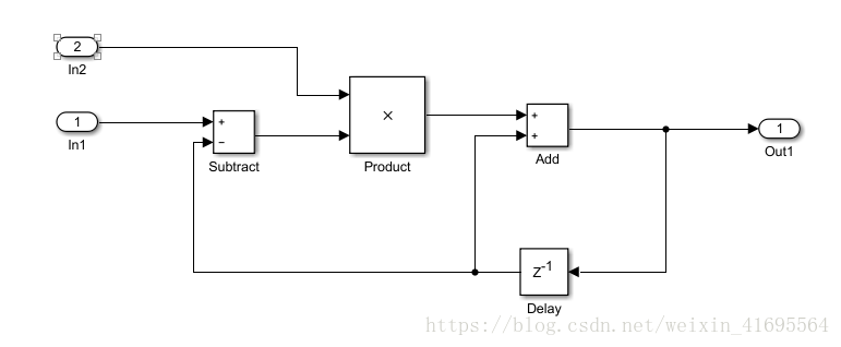 rtb_Delay += (rtU.In1 - rtb_Delay) * rtU.In2;