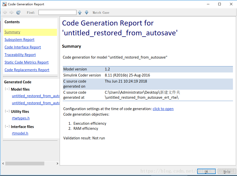 片刻后弹出Code Generation Report界面,如下图所示: